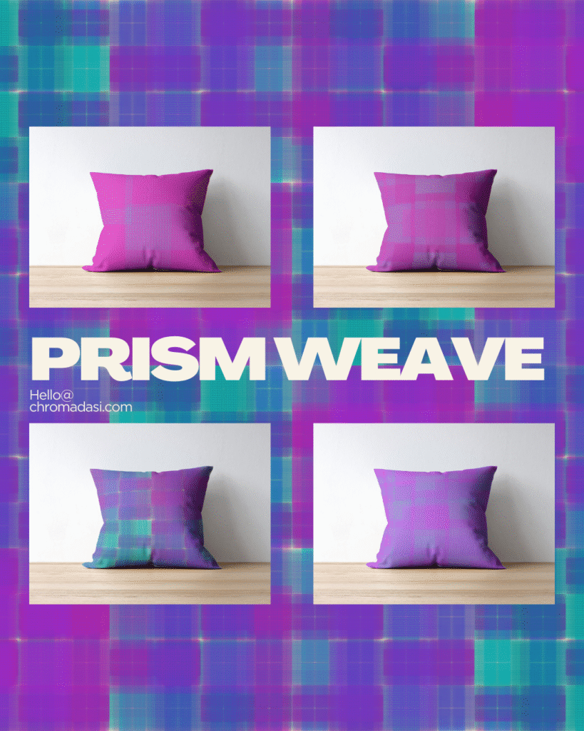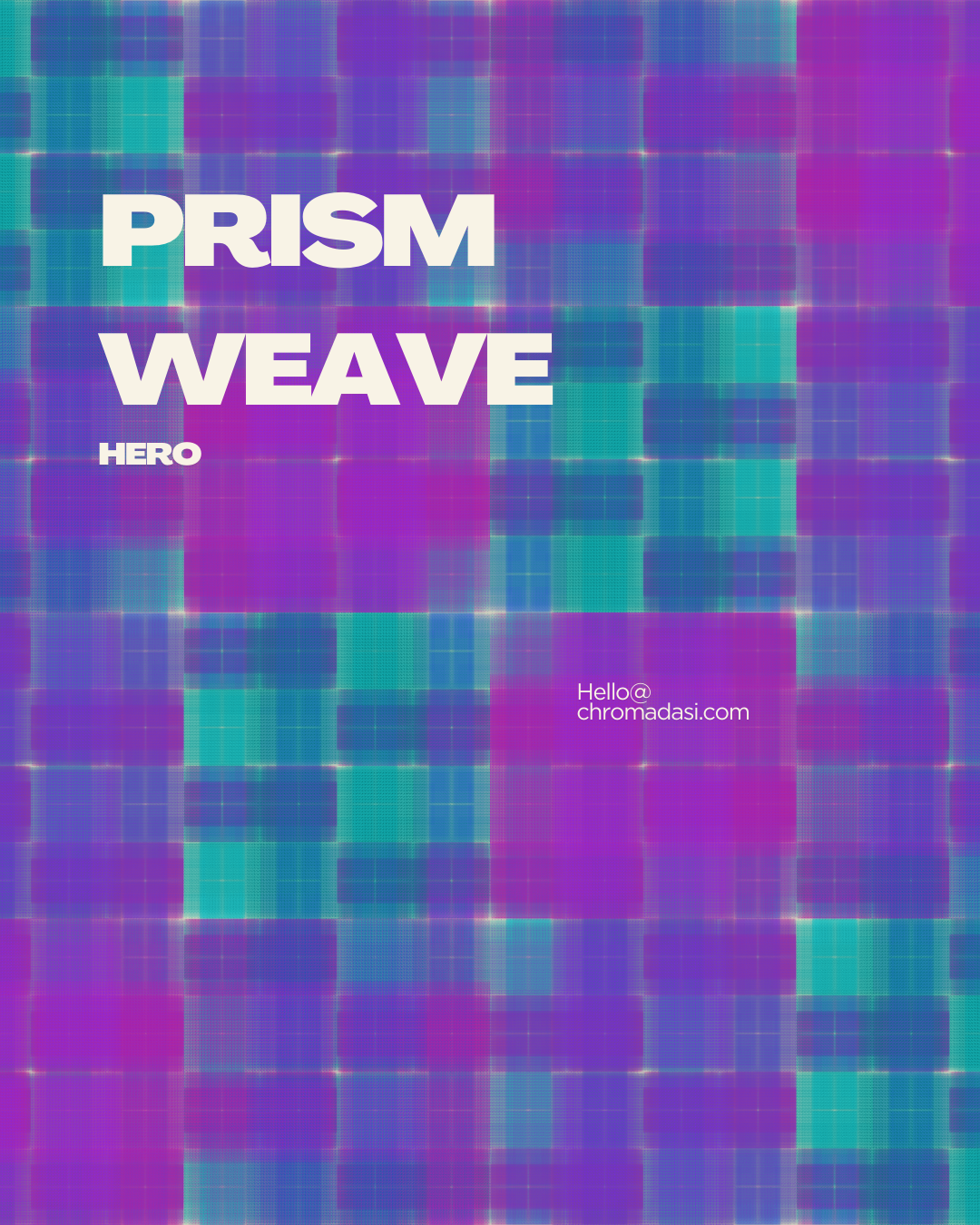 Tartan, also known as plaid, is a patterned cloth defined by crossing horizontal and vertical bands in multiple colours, creating repeating symmetrical checks. For Prism Weave, I took this structure as the foundation, then twisted it into something new: gradients, overlays, and color shifts that echo the woven fabric but push it into unexpected territory.