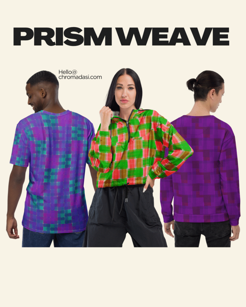 Prism Weave is a collection born at the crossroads of two very different worlds: the centuries-old tradition of tartan weaving and the futuristic pulse of vaporwave.